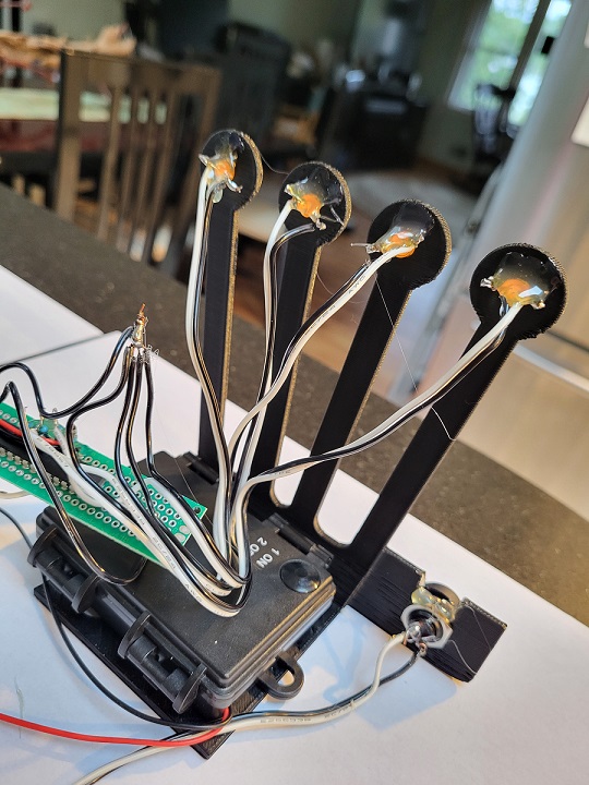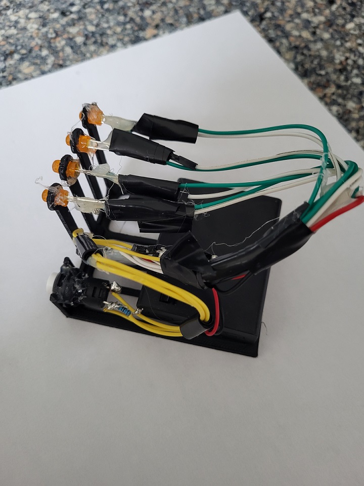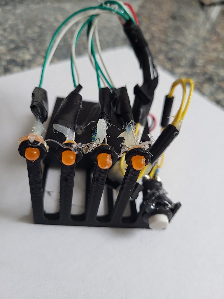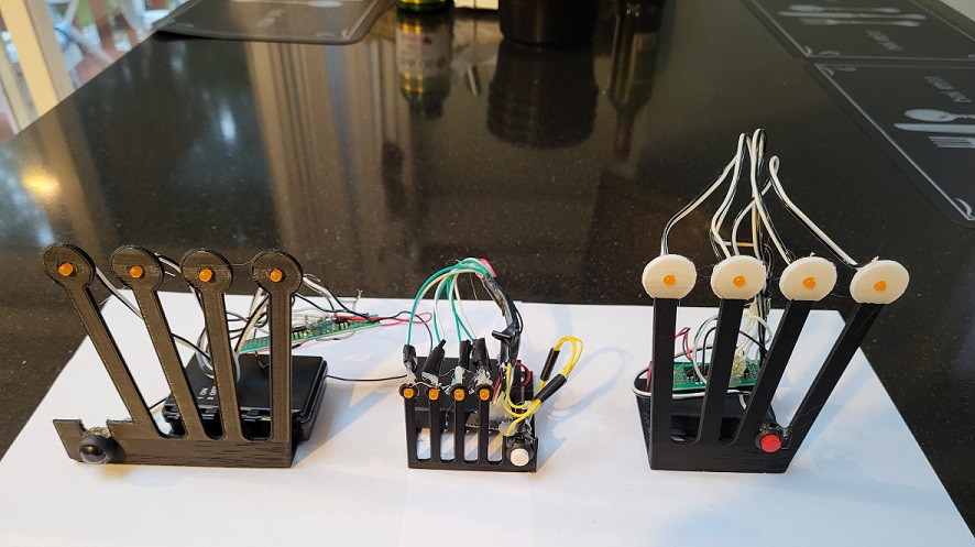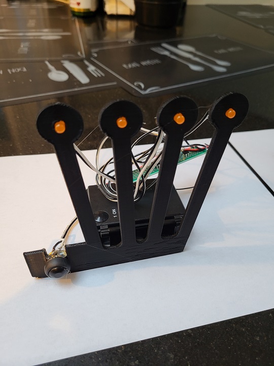 4 LED digital binary menorah (8 days). Using PIC16F916 microcontroller and 3D printed chassis.